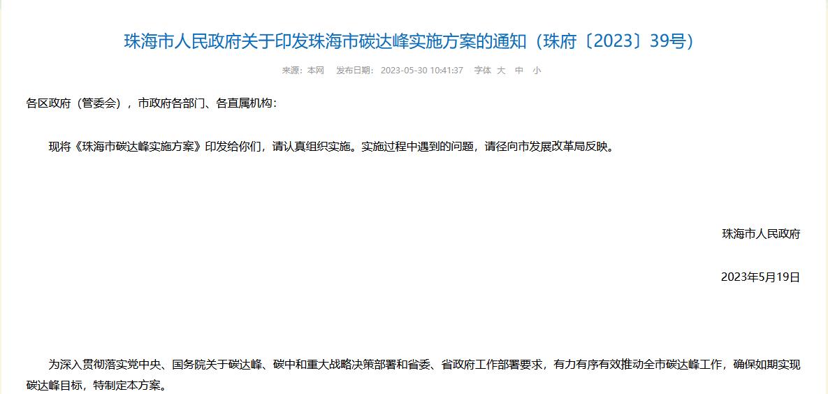 [ 導讀 ]氫啟未來網獲悉,5月30日,珠海市人民政府印發《珠海市碳達峰實施方案》