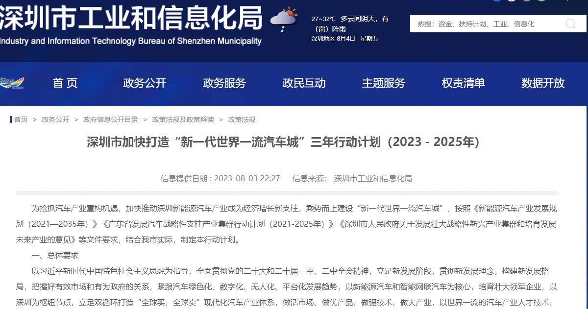 《深圳市加快打造“新一代世界一流汽車城”三年行動計劃(2023-2025年)》