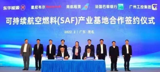 2月25日,東華能源股份有限公司與霍尼韋爾UOP在廣東茂名簽署戰(zhàn)略合作協(xié)議,共同建設(shè)中國(guó)第一個(gè)可持續(xù)航空燃料產(chǎn)業(yè)基地——東華能源(茂名)烷烴與綠色能源資源綜合利用項(xiàng)目。根據(jù)協(xié)議,雙方將在茂名建設(shè)年產(chǎn)量達(dá)100萬(wàn)噸的可持續(xù)航空燃料(SAF)生產(chǎn)基地。該項(xiàng)目分為兩個(gè)階段,建造了兩套以廚余油和動(dòng)物脂肪為主要原料的生產(chǎn)裝置。