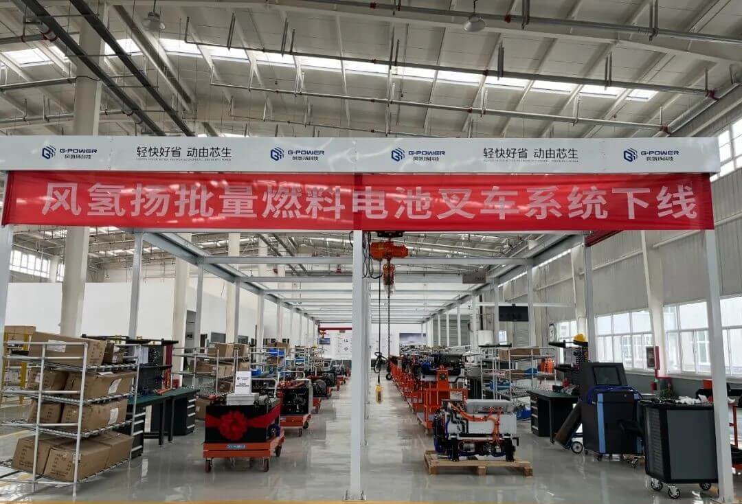 風(fēng)氫揚批量燃料電池叉車系統(tǒng)在濮陽下線