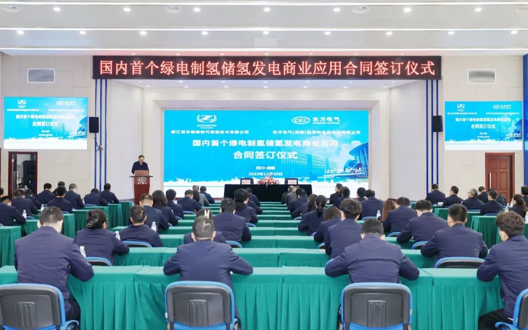 11月28日,國內(nèi)首個(gè)且容量功率最大的綠電制氫儲(chǔ)氫發(fā)電商業(yè)應(yīng)用項(xiàng)目簽約儀式在東方鍋爐舉行。該項(xiàng)目將在都江堰建設(shè)10兆瓦等級(jí)的工業(yè)園區(qū)氫儲(chǔ)能供電站,通過綠電制氫、氫儲(chǔ)能和氫發(fā)電保障工業(yè)園區(qū)峰電時(shí)段供電,打造工業(yè)園區(qū)綠色低碳電力供應(yīng)新模式。