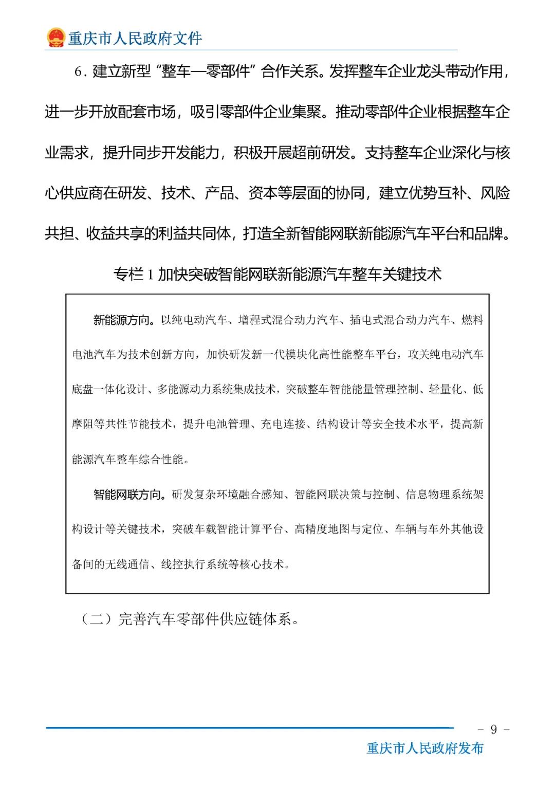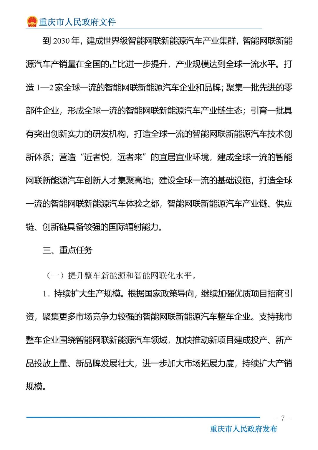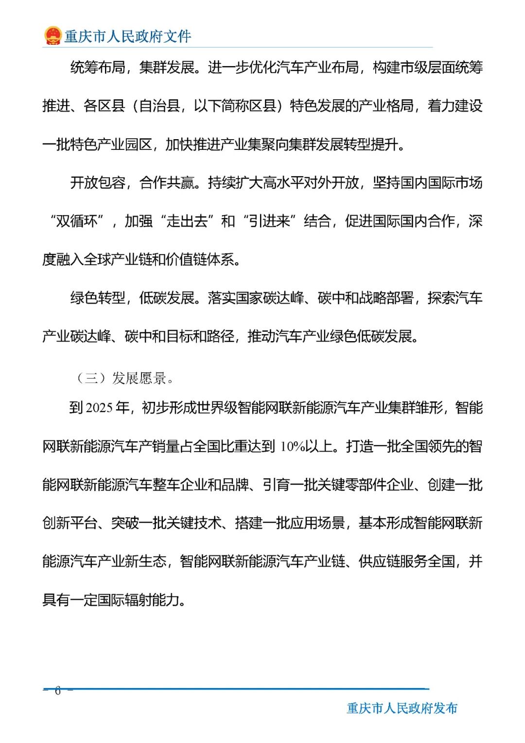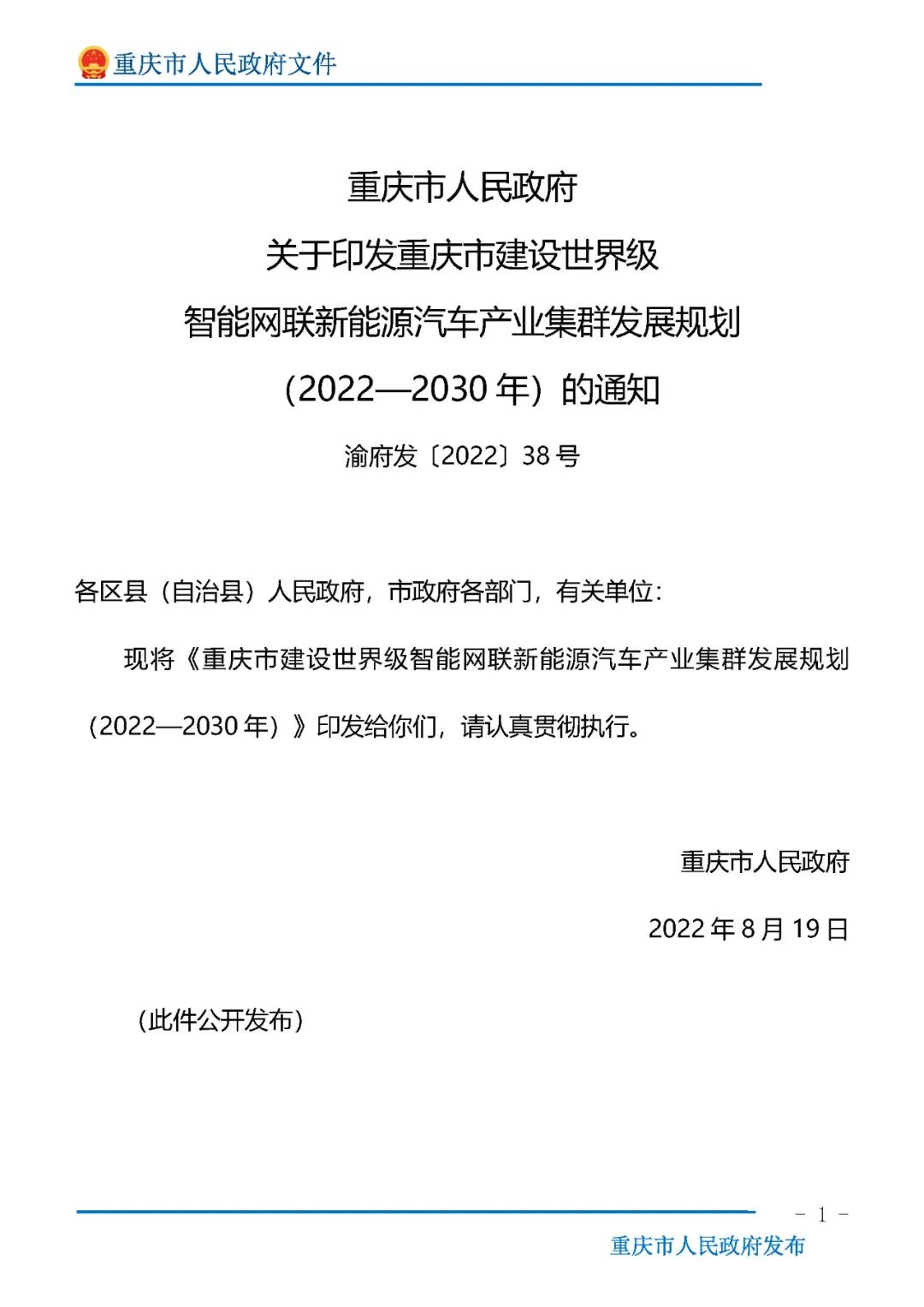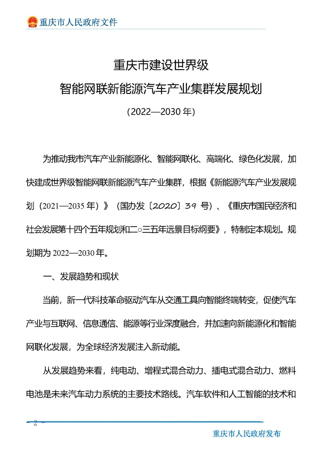 9月8日,重慶市政府發(fā)布關(guān)于印發(fā)《重慶市建設(shè)世界級(jí)智能網(wǎng)聯(lián)新能源汽車(chē)產(chǎn)業(yè)集群發(fā)展規(guī)劃(2022—2030年)》的通知(以下簡(jiǎn)稱(chēng)《規(guī)劃》)。