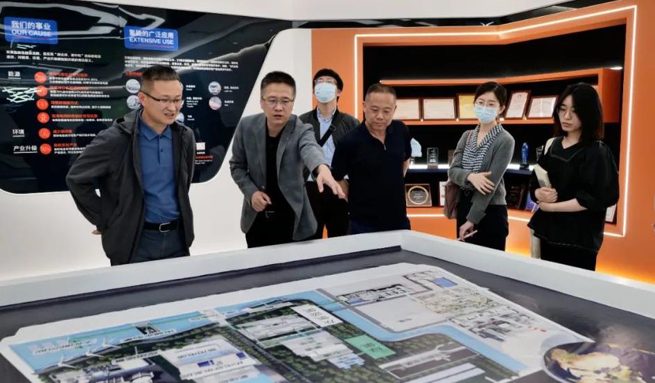 顧春華副部長一行在付宇博士的陪同下,先后參觀了上海驥翀的展廳、研發(fā)試制工藝室和研發(fā)測試試驗室。期間,付宇博士詳細介紹了驥翀氫能的企業(yè)發(fā)展歷程、產(chǎn)業(yè)布局、核心團隊、電堆和能源產(chǎn)品等相關(guān)內(nèi)容。雙方就氫能產(chǎn)業(yè)鏈的上下游發(fā)展情況,氫電與鋰電的未來趨勢展開深入討論。