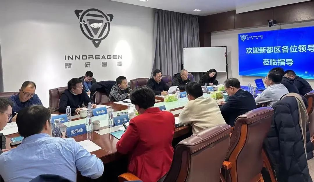 1月2日,成都市新都區(qū)委副書記、區(qū)長魏柯帶隊,成都市新都區(qū)人民政府副區(qū)長賀凱豐、成都市新都現(xiàn)代交通產(chǎn)業(yè)功能區(qū)管委會主任張啟明等一行陪同赴新研氫能進行交流考察,勢加透博董事長張學(xué)鋒陪同。新研氫能董事長洪鑫、首席戰(zhàn)略官卓瑪、常務(wù)副總魯琦等公司高層熱情接待。