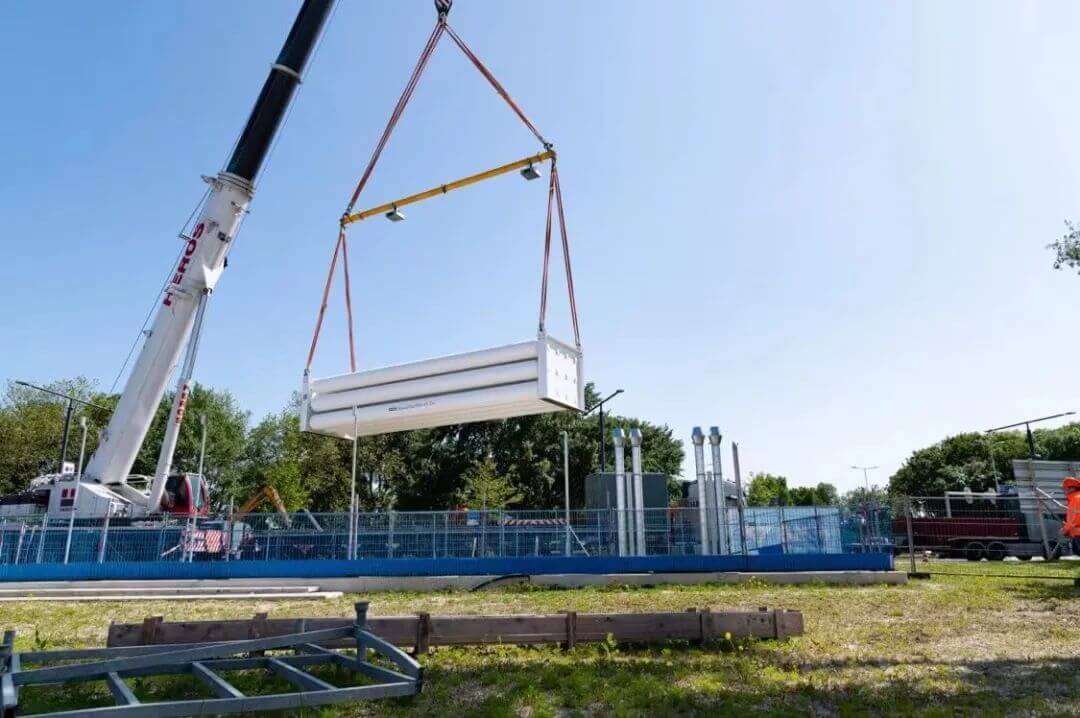荷蘭港口城市D市陽光明媚,由浙江藍能氫能科技股份有限公司設計制造的加氫站儲氫容器組正在有條不紊的吊裝,在藍天的映照下,潔白的儲氫容器顯得格外的光彩奪目。這是歐洲第一個地下加氫站,也是浙江藍能首次設計制造符合歐洲CE/PED標準的儲氫瓶組。