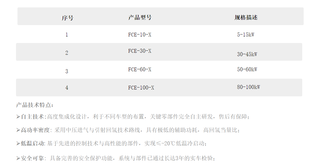 氫燃料電池發(fā)動機產(chǎn)品覆蓋5-100kW功率范圍,低壓與中壓兩大系統(tǒng)。同時提供動力機車與大型發(fā)電系統(tǒng)千、兆瓦級大功率定制產(chǎn)品